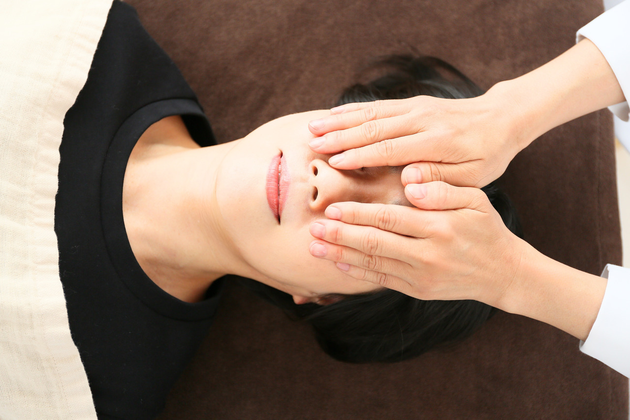 首から後頭部にかけての筋肉をゆるめ、気の流れを整える仕上げの施術です。